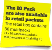 The 6 pancake and 10 pancake packs are both available in wholesale boxes.